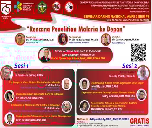 Caption: Flyer of the 9th webinar of the series of second Annual Malaria Research in Indonesia. Various challenges of and perspectives on the malaria programme were discussed by national and international researchers. Photo credit: NMCP 2020