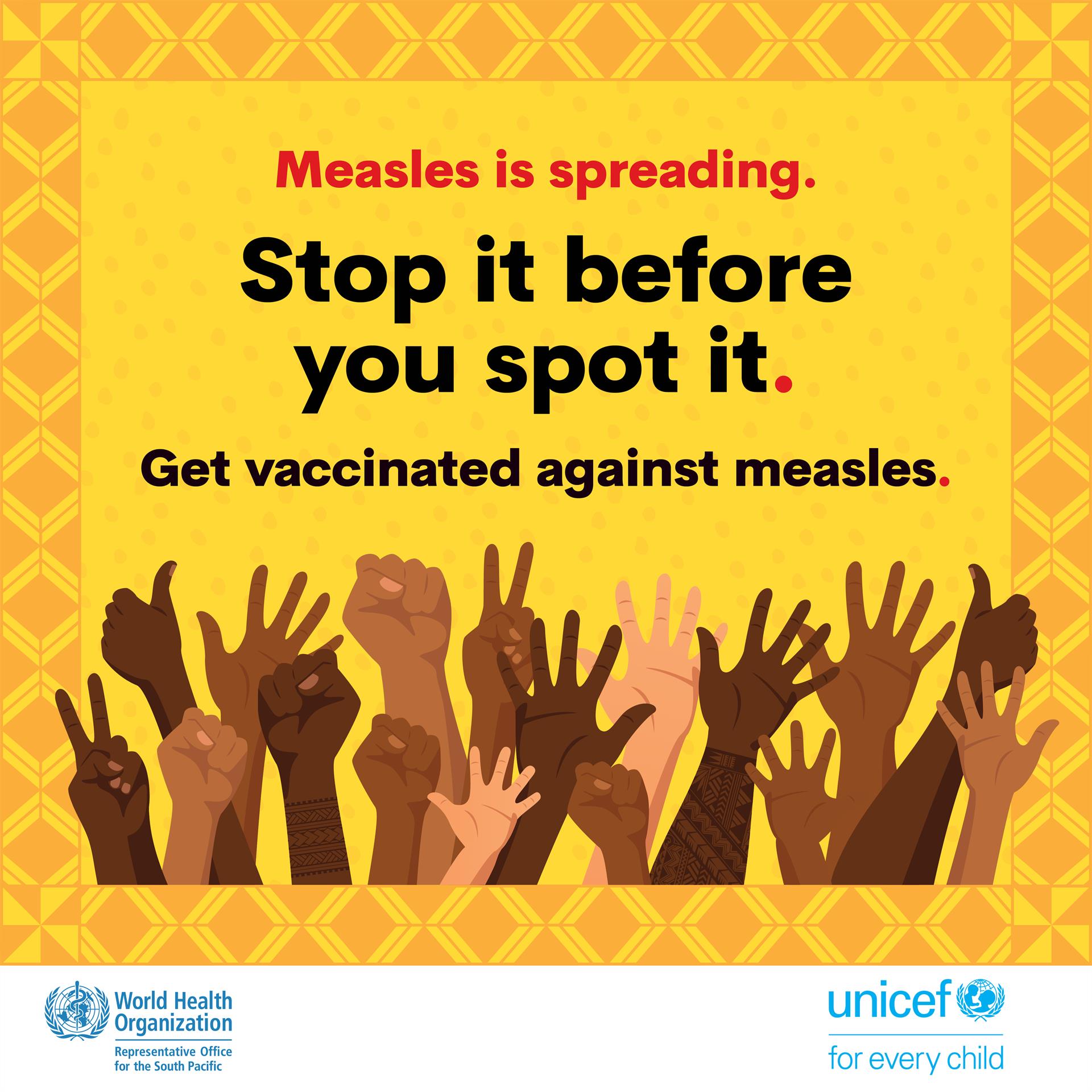 Since 2017, there has been a global resurgence of measles, including in several countries of the Western Pacific Region. The last declared outbreak of the measles in the Pacific occurred in 2014.